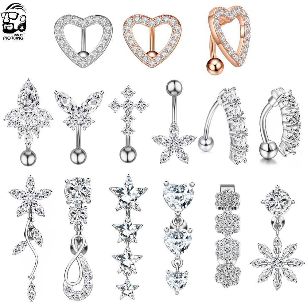 Задняя планка CZ 14G кольцо с подвеской в пупок цветок Звезда пупок кольца пирсинг из хирургической стали Ombligo Oreja модные ювелирные изделия для тела