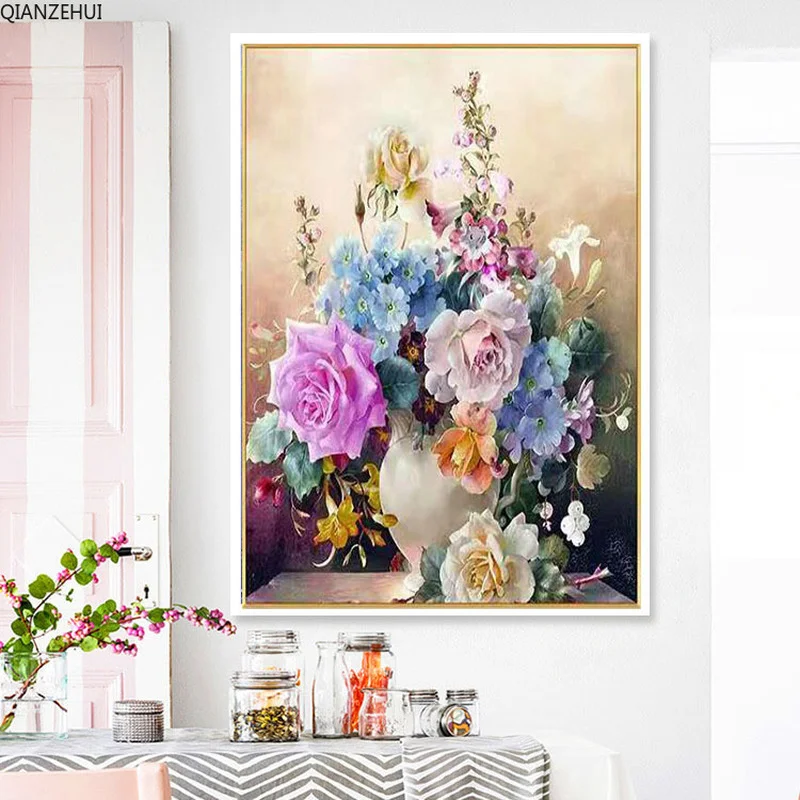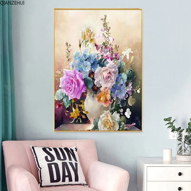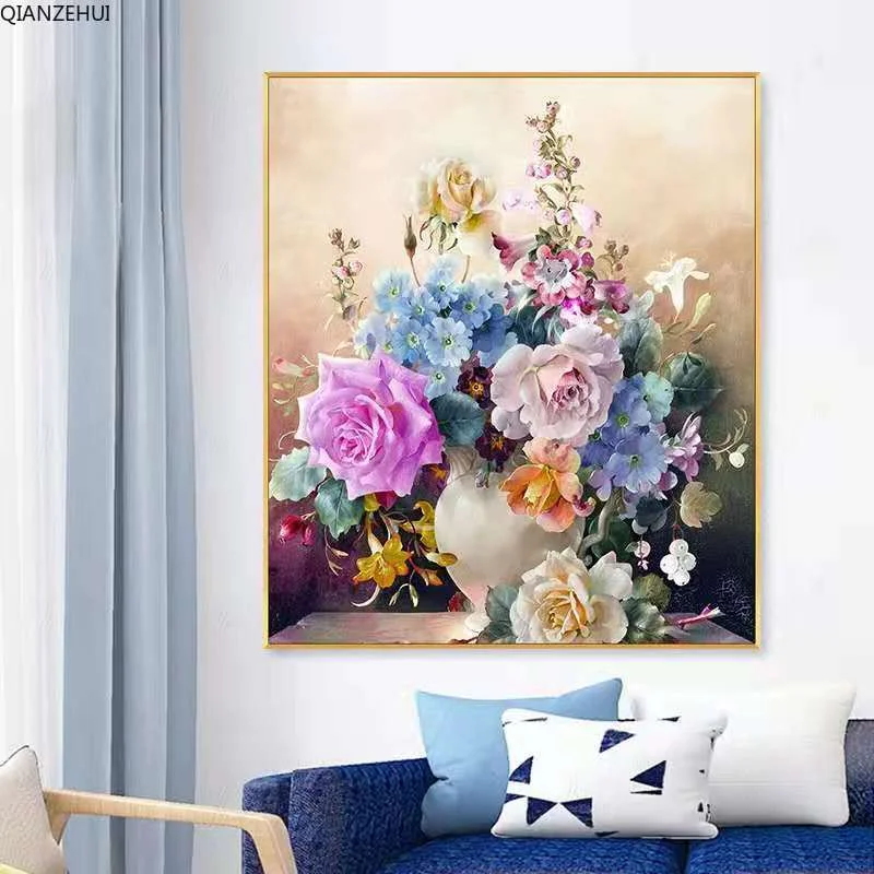 QIANZEHUI,DIY 5D алмазная вышивка, круглые алмазы богатство цветы п...
