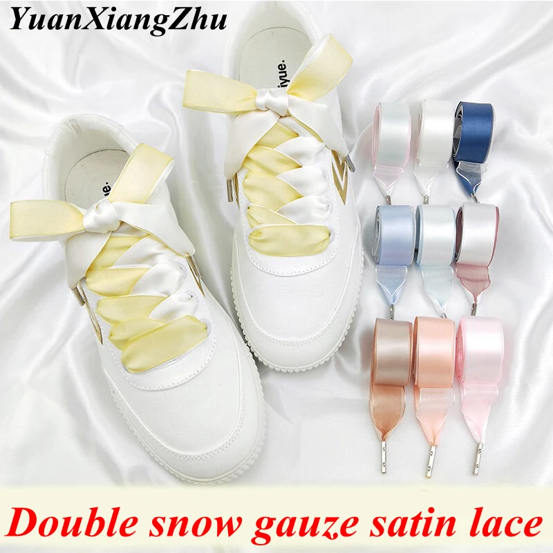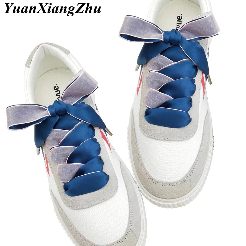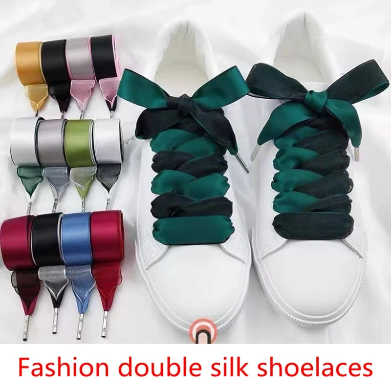Шнурки женские двойные шелковые, плоская атласная лента, качественные металлические для обуви, 1 пара