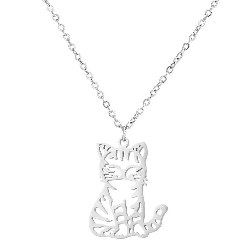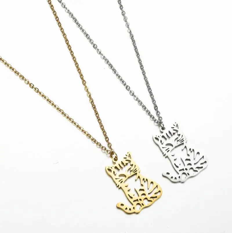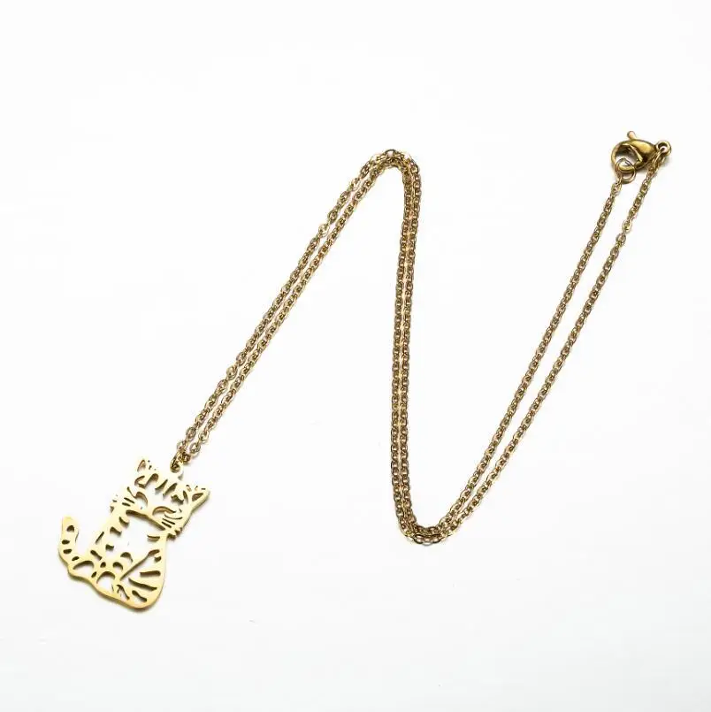 Цепочка с подвеской Sinogaa из нержавеющей стали, милая ажурная цепочка до ключиц в форме кота Для образовательного ошейника, Для Женщин