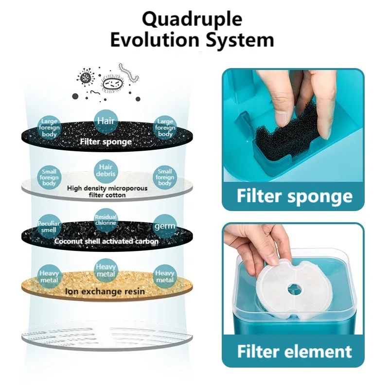 Стиль фонтанаПодходит для нежных кошекФонтан + губкаДва способа выхода водыСтиль фонтанаВыпейте большую площадь воды, подходящую для собак и кошек, которые свободно пьют, и кошки также могут удалить пыль, указанную воронкой