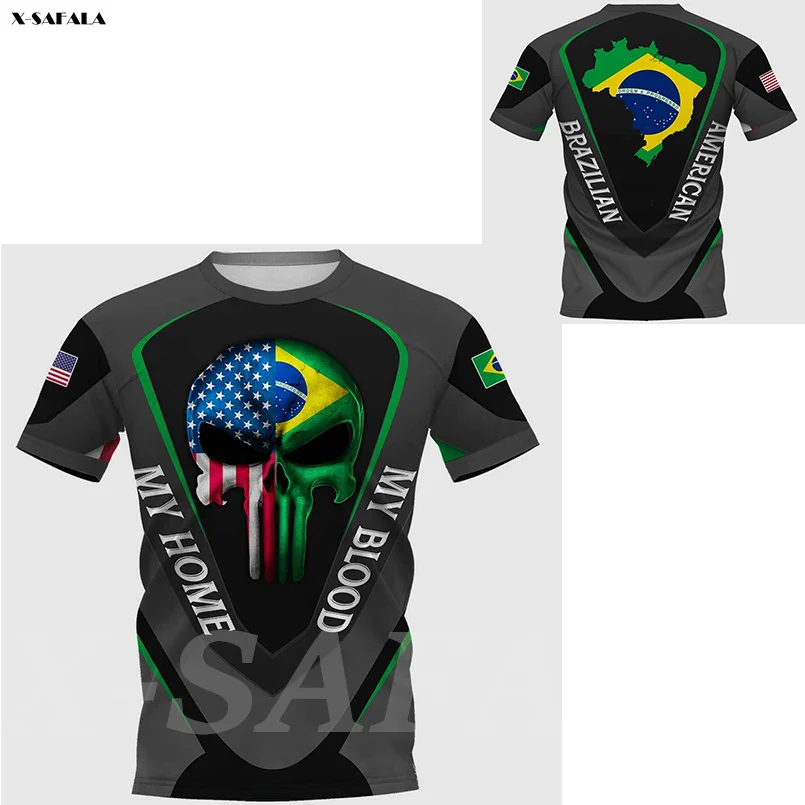 Мужская и женская футболка с круглым вырезом, рубашка с 3D-принтом черепа, флага США, Бразилии, Южной Америки, в стиле Харадзюку, повседневный Топ