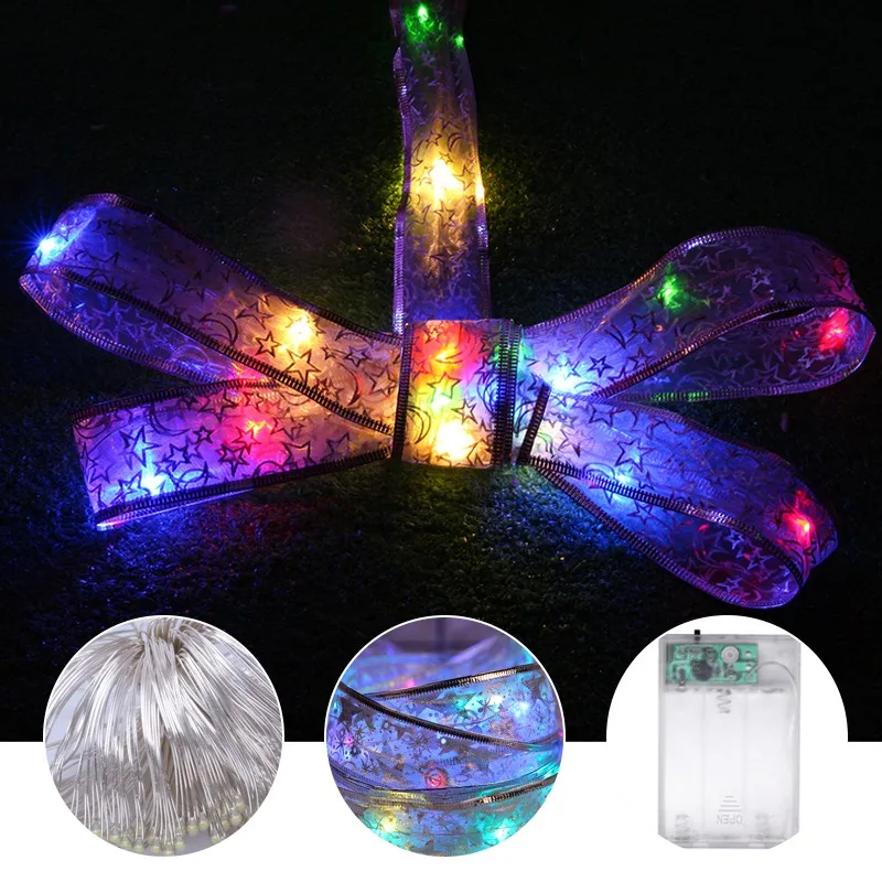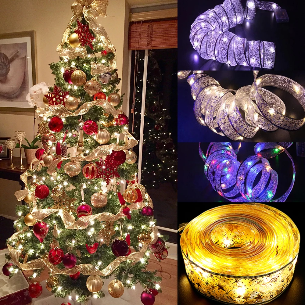 Рождественское украшение, сказочные огни, гирлянды, рождественские Ленточные банты со светодиодами, украшения для рождественской елки, новогодние и рождественские украшения для дома