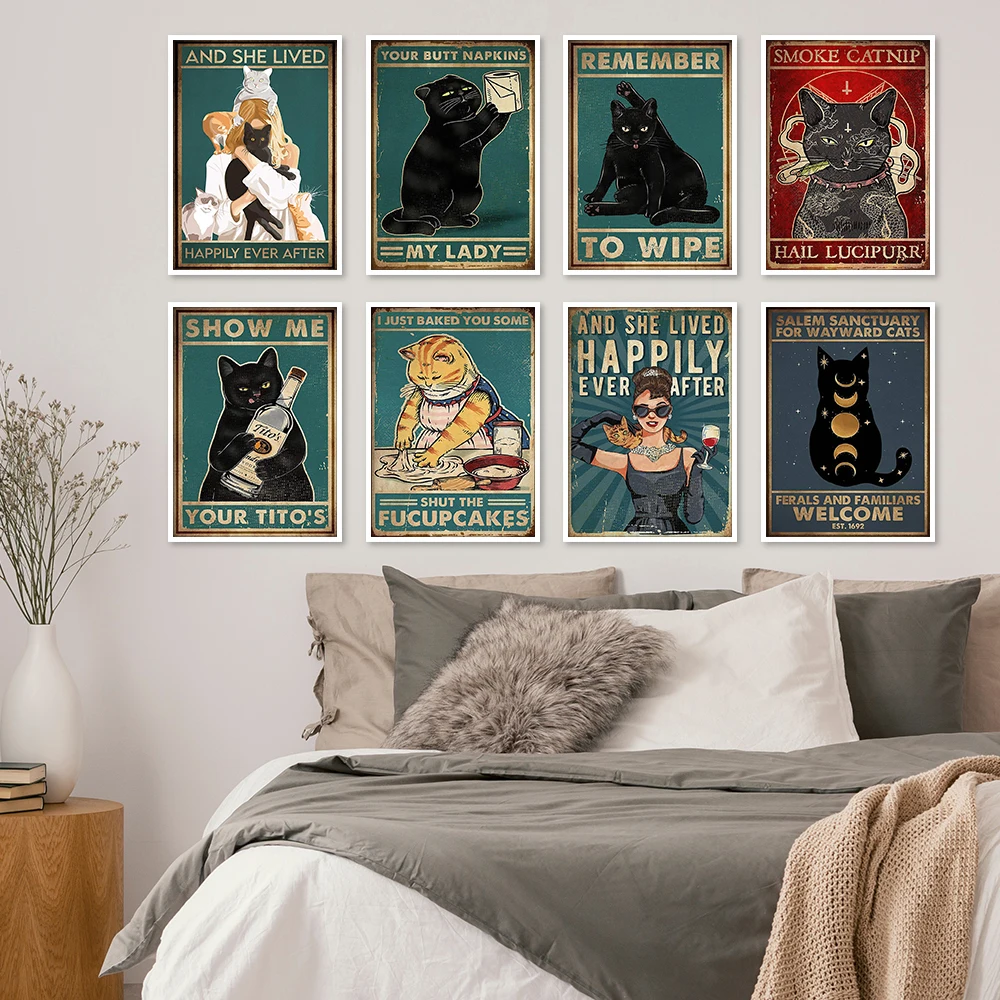 Милый Черный кот Хэллоуин ведьма скандинавский постер Тыква забавны...