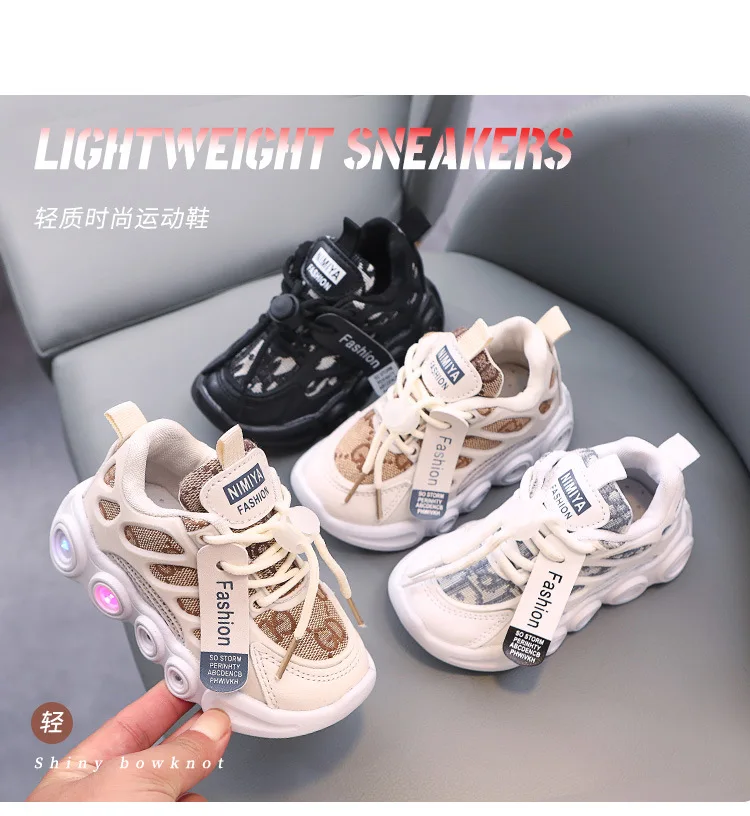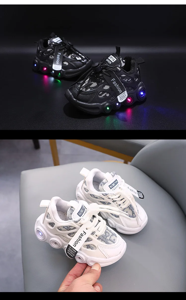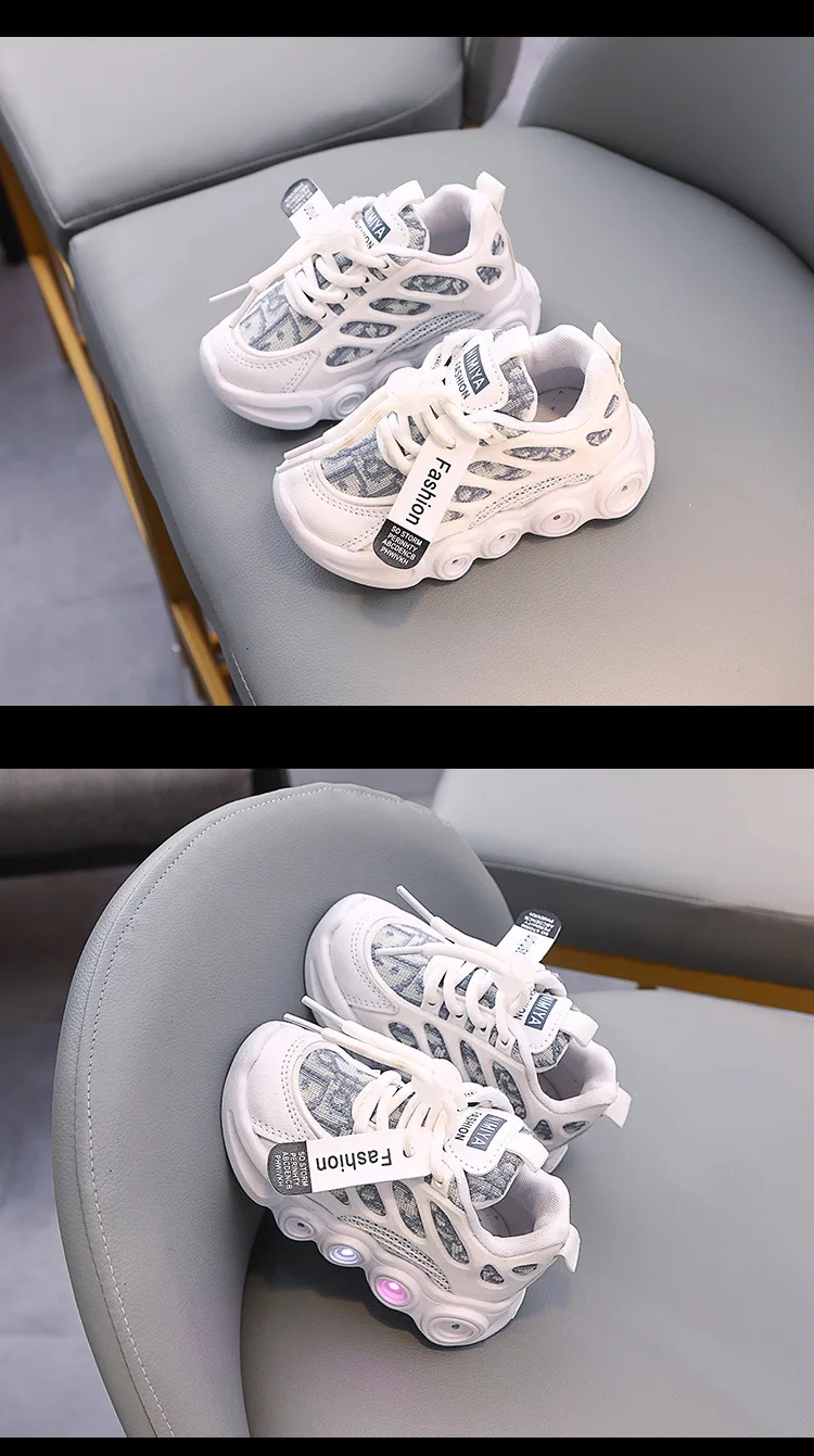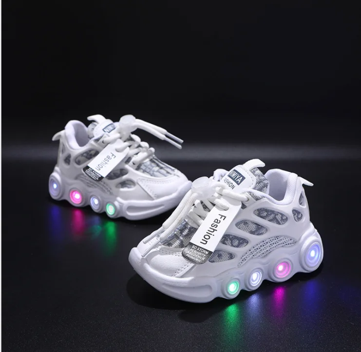 Детские кроссовки для мальчиков и девочек, повседневная Весенняя дышащая мягкая спортивная обувь с подсветкой, для бега, размеры 2