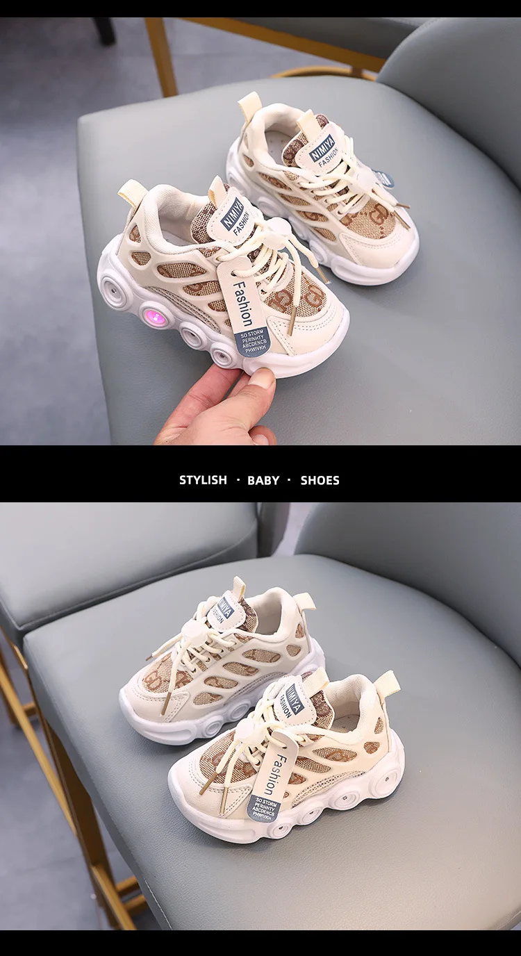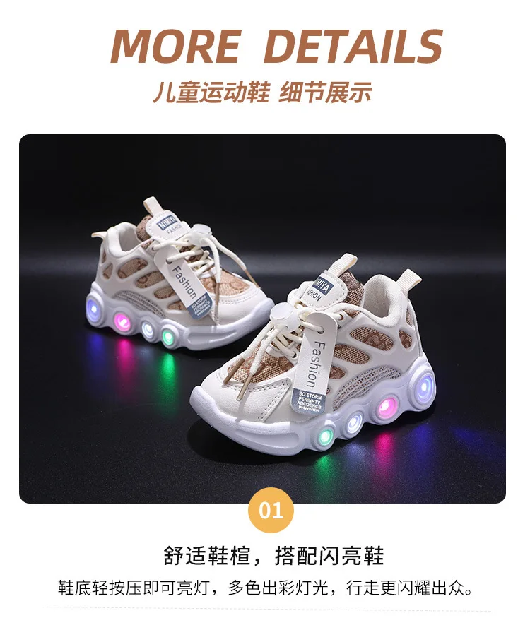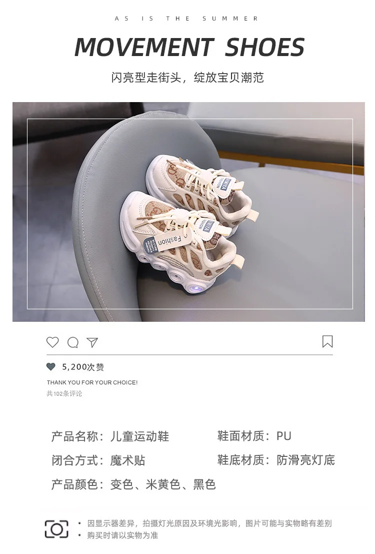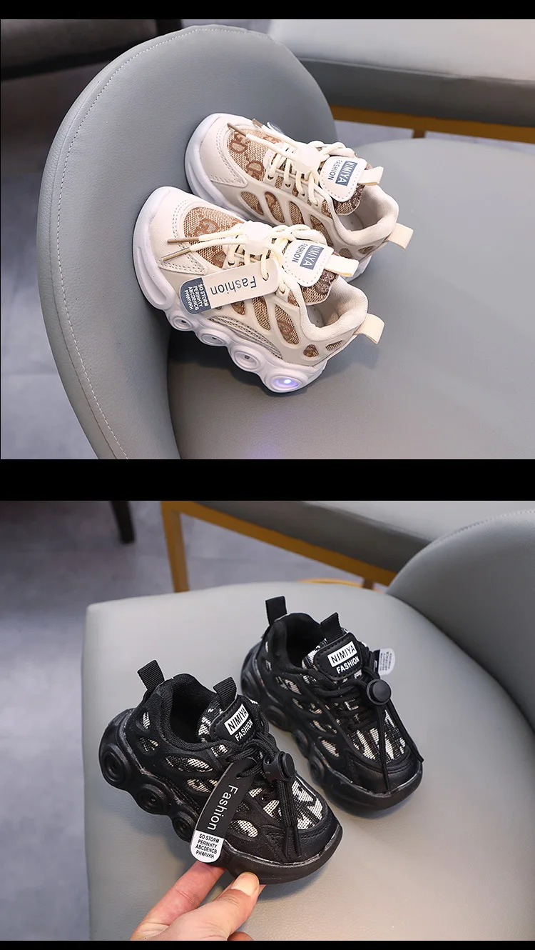 Детские кроссовки для мальчиков и девочек, повседневная Весенняя дышащая мягкая спортивная обувь с подсветкой, для бега, размеры 2