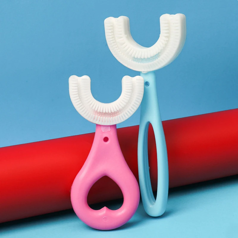 Детская Силиконовая зубная щетка U-образной формы, 360 градусов