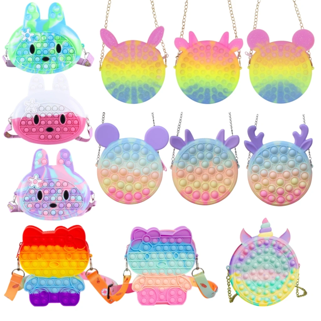 Снять аутизм Popete Kawaii пуш-ап Ее пузырь фиджет-антистресс игрушки сумка Непоседа куб игрушки, с отделением для монет, кошелек Kawaii хлопки сенсорная игрушка