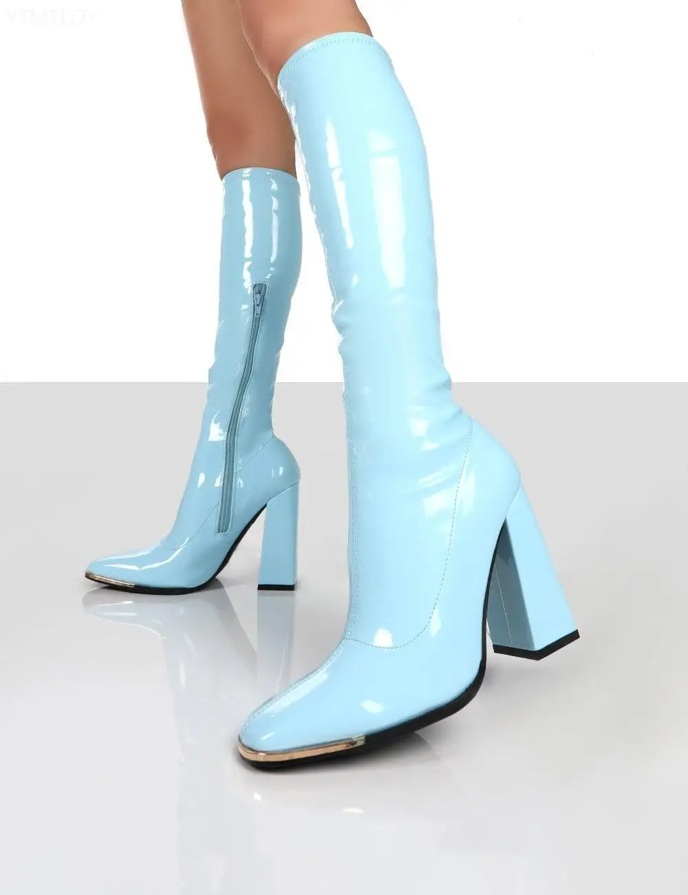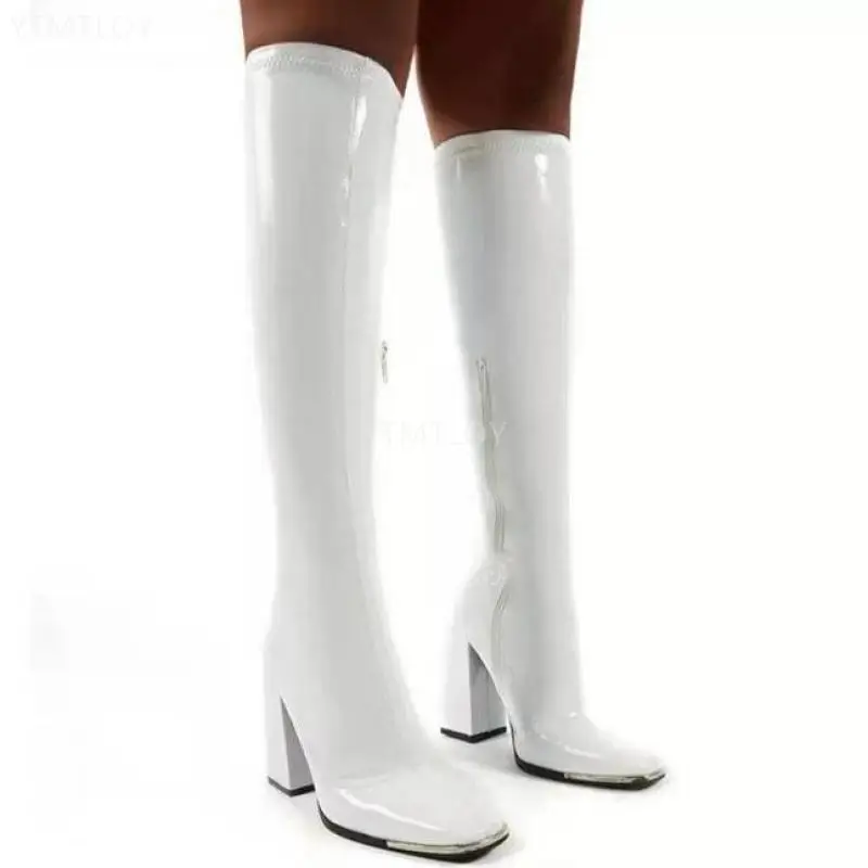 Новое поступление, женские облегающие сапоги на платформе, розовые, черные вечерние туфли, женская обувь из лакированной кожи Ytmtloy до колена, сексуальные женские сапоги