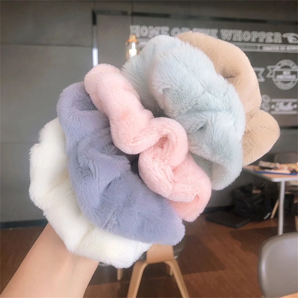 Зимние теплые мягкие резинки для волос для женщин и девушек милые разноцветные резинки для волос аксессуары для волос