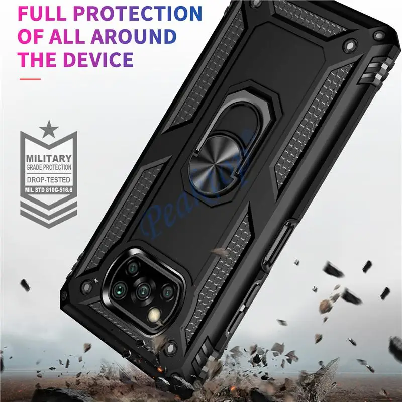 Для Poco X3 NFC бронированный чехол с кольцом на палец для телефона...