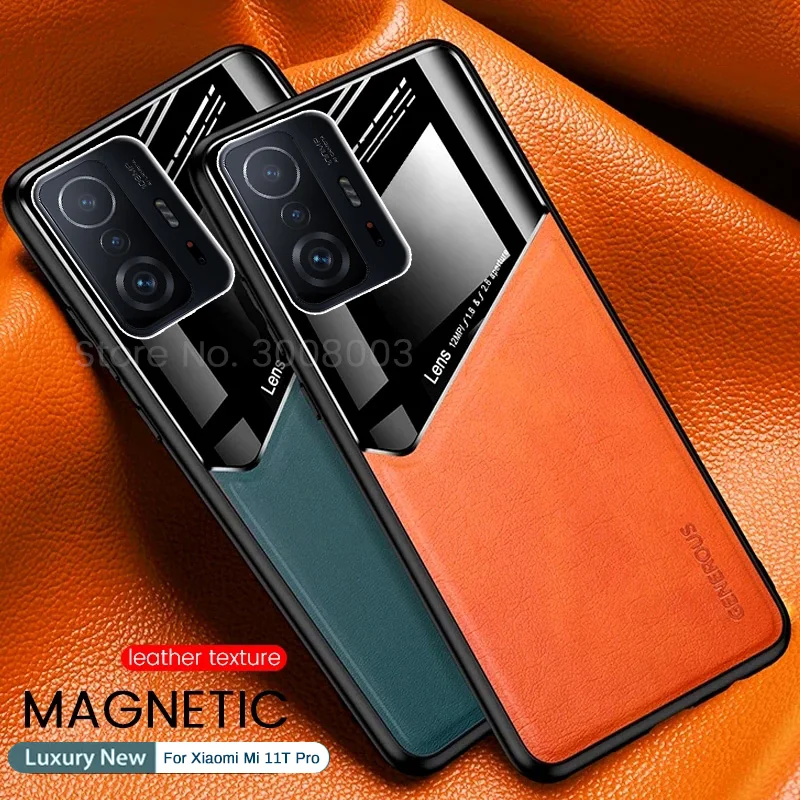 Para Fundas Xiao mi 11 T чехол автомобильный магнитный держатель PC + обложка на заднюю панель из искусственной кожи Xio mi 11 T Mi 11 T 11 T Pro T11 5G 2021 противоударный чехол