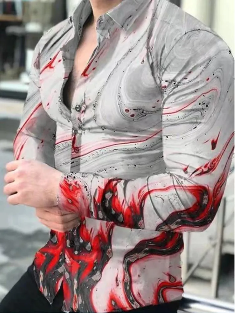 Мужская рубашка с длинным рукавом, с градиентным принтом, на пуговицах