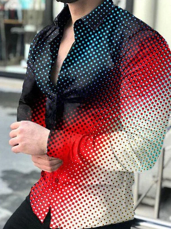 Новинка весна-осень мужская рубашка с градиентным узором в горошек ...