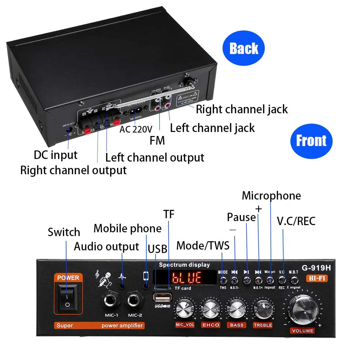 G-919H 1000 Вт домашние усилители мощности, аудиоусилитель bluetooth, сабвуфер, динамики, аудиосистема для театра, 220 В110 В, FM, USB