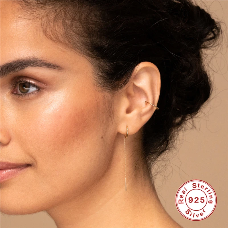Женские серьги-каффы без пирсинга, 925 пробы Серебряная Ушная манже...