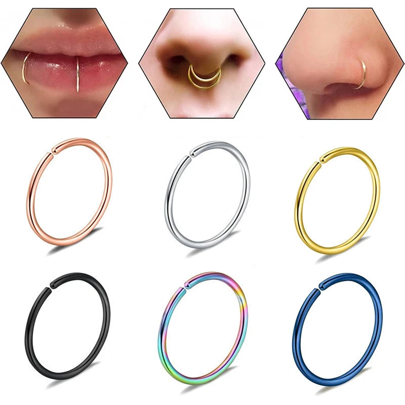 Кольцо в нос для пирсинга, стальное бесшовное украшение для прокола...