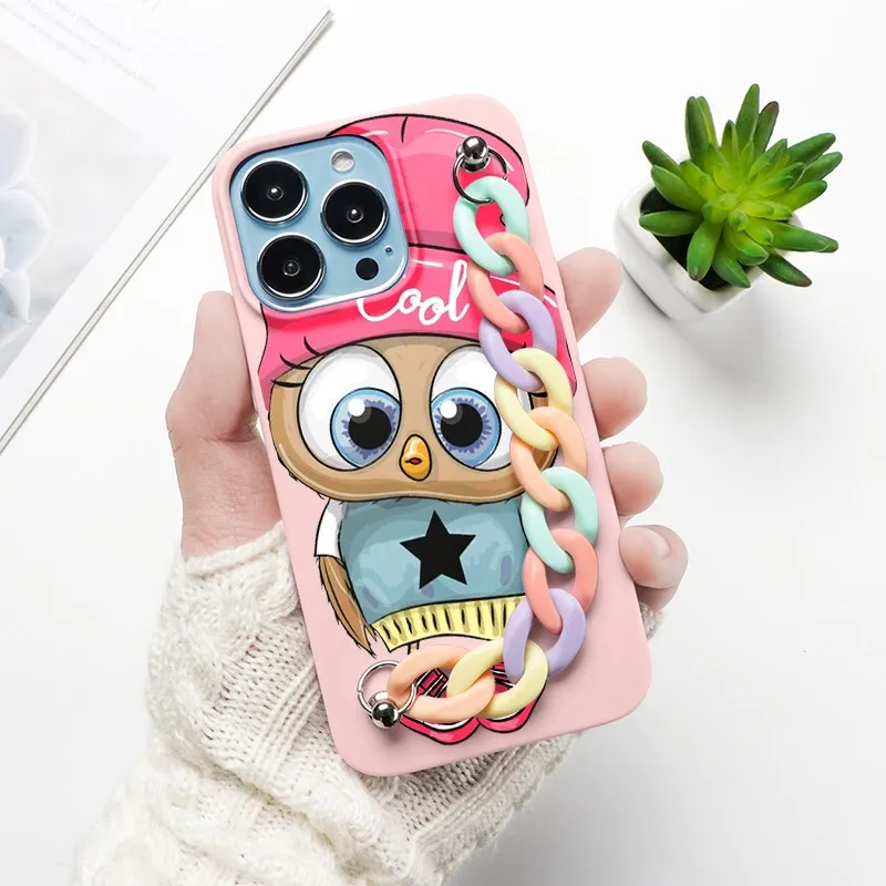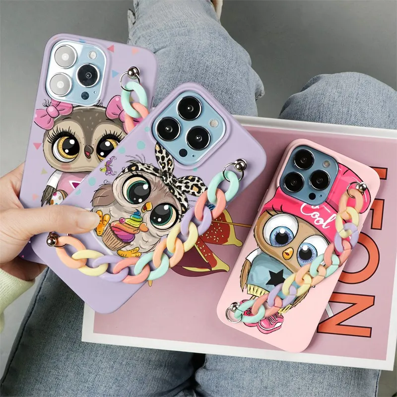 Милый Радужный чехол-цепочка с совой для Xiaomi Poco X3 F3 M3 Mi 10T CC9E CC9 Redmi Note 11 Lite 8T 9S 9 10 7 5 8 Pro Max 9C NFC 9T Coque