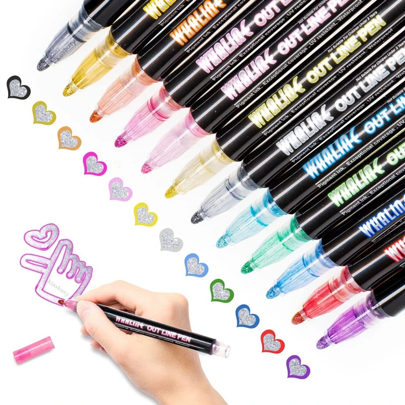 8 12 цветов 40120 шт.компл. двухрядная контурная ручка Металлический Цвет Маркер волшебный маркер ручка для художественной живописи письменные принадлежности