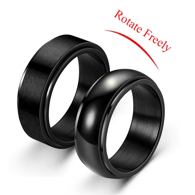 Свободно вращающееся кольцо-антистресс из титановой стали для мужчин и женщин, унисекс, черные кольца из нержавеющей стали для снятия стресса, ювелирные изделия