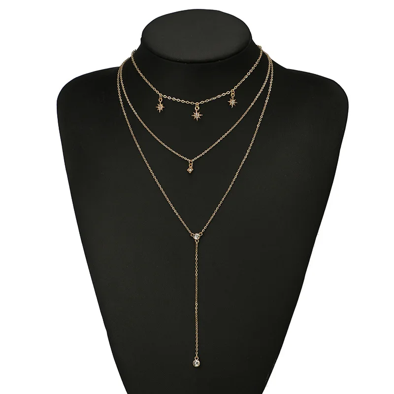 Трендовое многослойное ожерелье для женщин, колье-чокер со звездами, эффектное колье золотого цвета, вечерние ювелирные изделия для девочек
