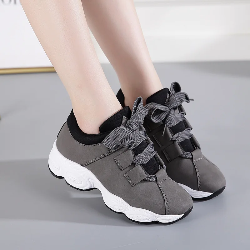 Кроссовки женские из сплит-кожи, массивные, на шнуровке, повседневн...