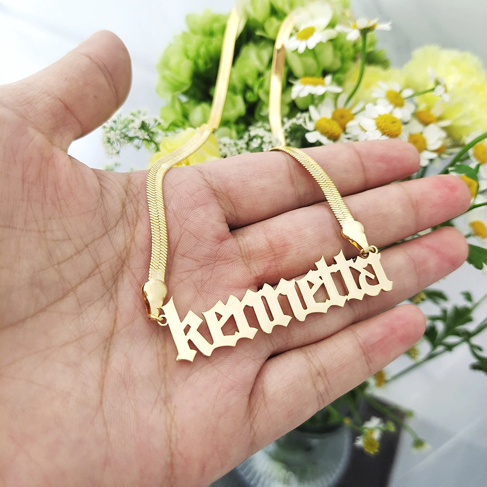Ожерелье с именем на заказ 2021, ожерелье-цепочка на заказ со змеиным плетением, чокер из нержавеющей стали, персонализированное ожерелье для женщин и девушек, ювелирные изделия