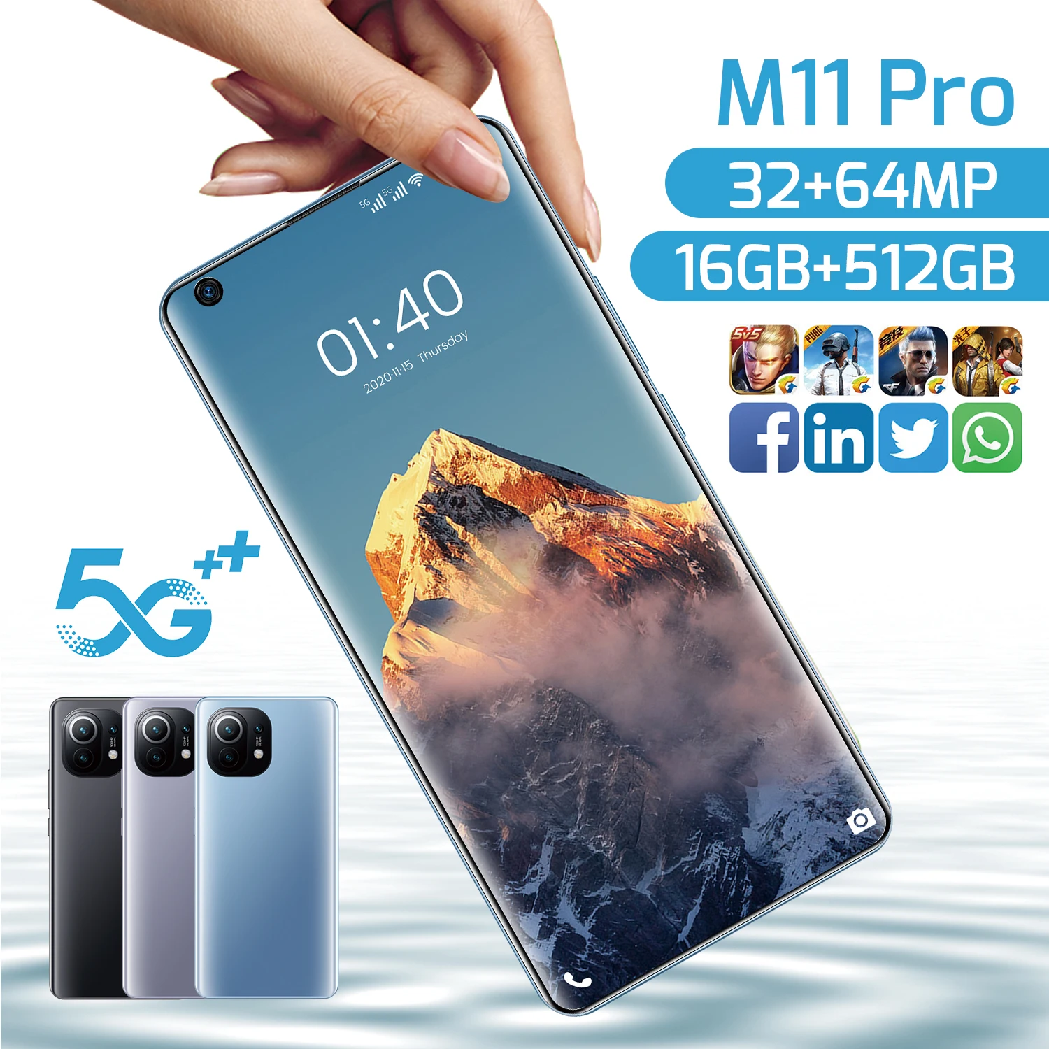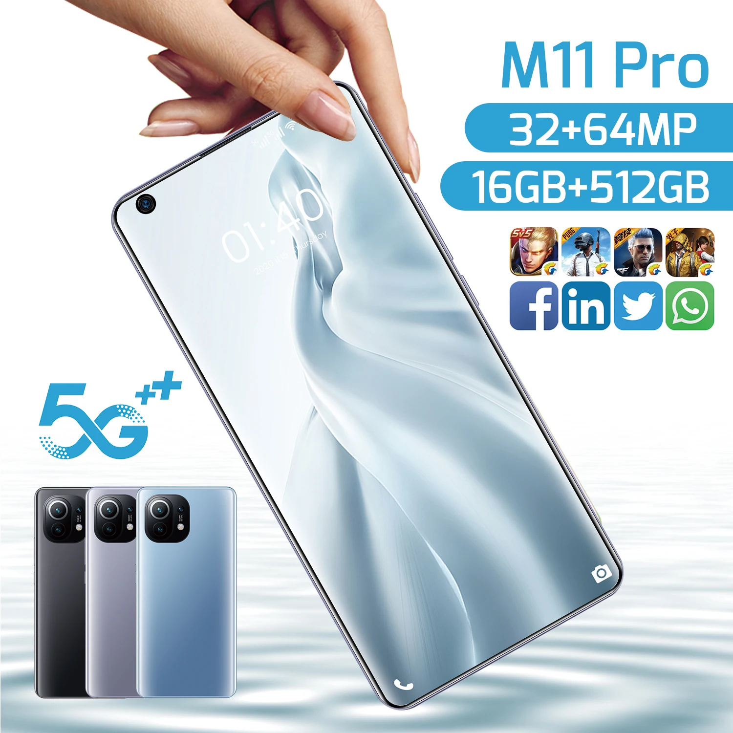 Новинка 2021, смартфон M11 Pro, 7,3 дюйма, 10 ядер, 6800 мАч, 16 + 512 ГБ, 32 Мп + 64 мп, смартфон с двумя SIM-картами, Android
