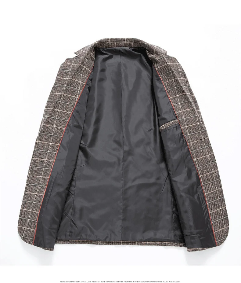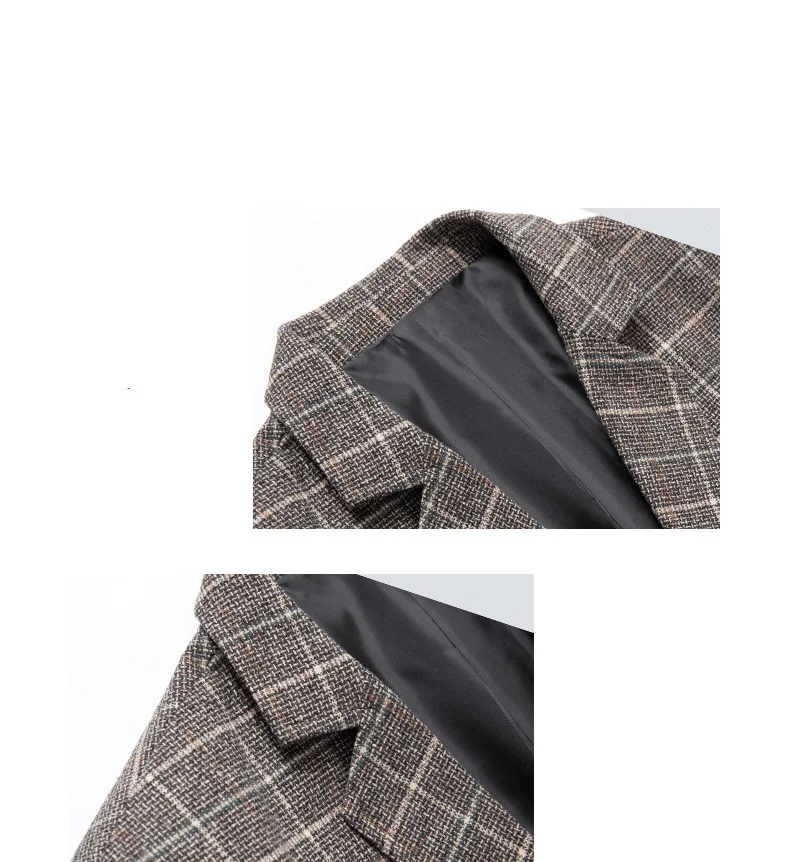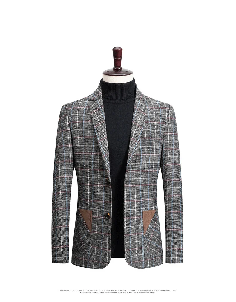 Пиджак мужской высокой посадки, брендовый блейзер в клетку, приталенный силуэт, теплая куртка