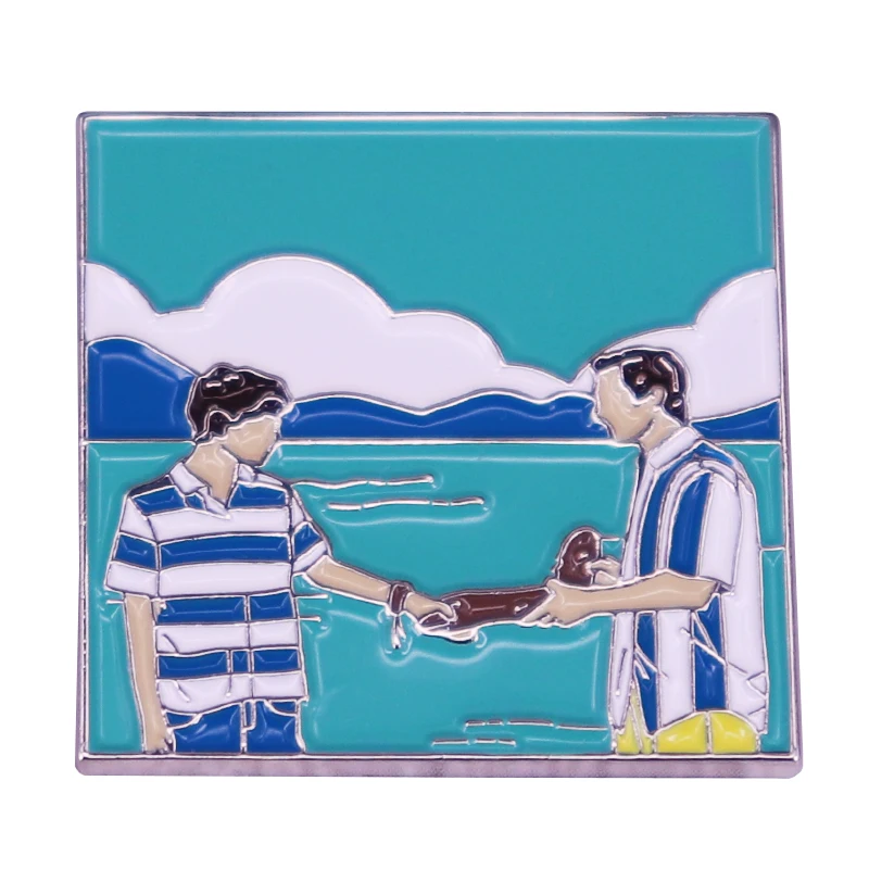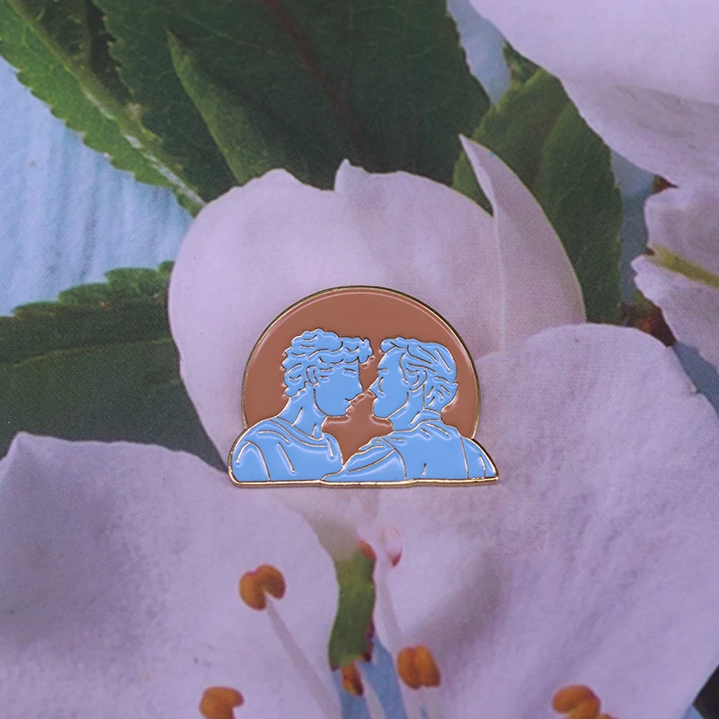 Персик, Италия, звоните мне по вашему имени, кинопин, Элио и Оливер мальчик значок, любовь, ЛГБТ, фанаты фильмов, стильное художественное дополнение