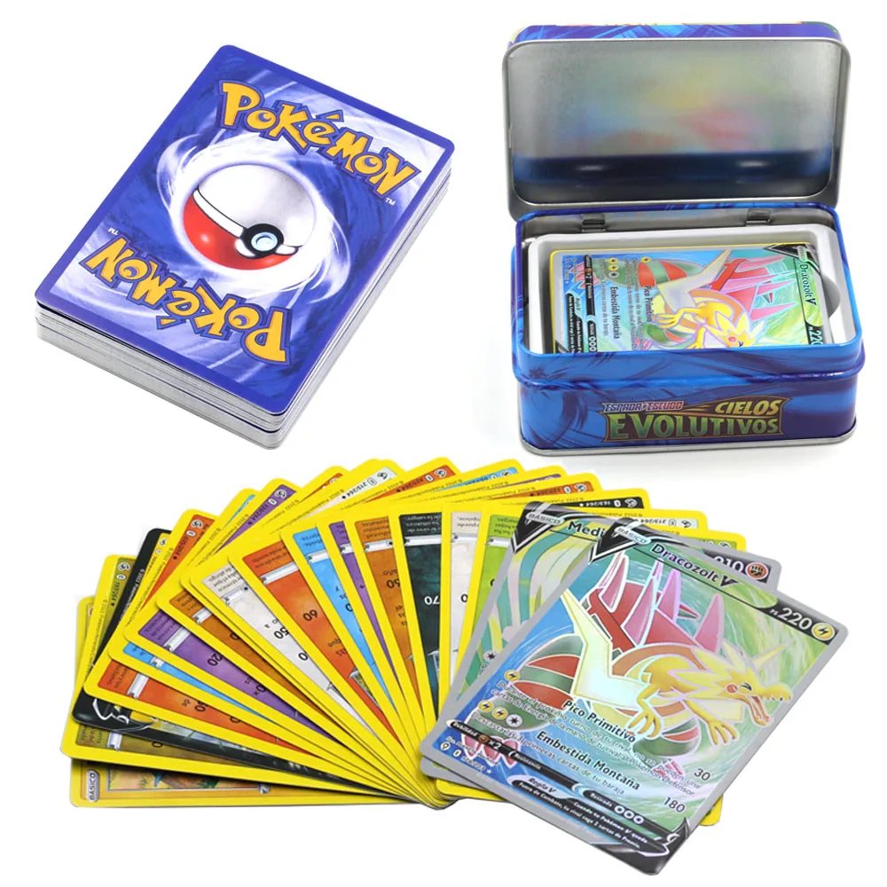 Аниме 42 шт. испанские карты покемона железная металлическая коробк...