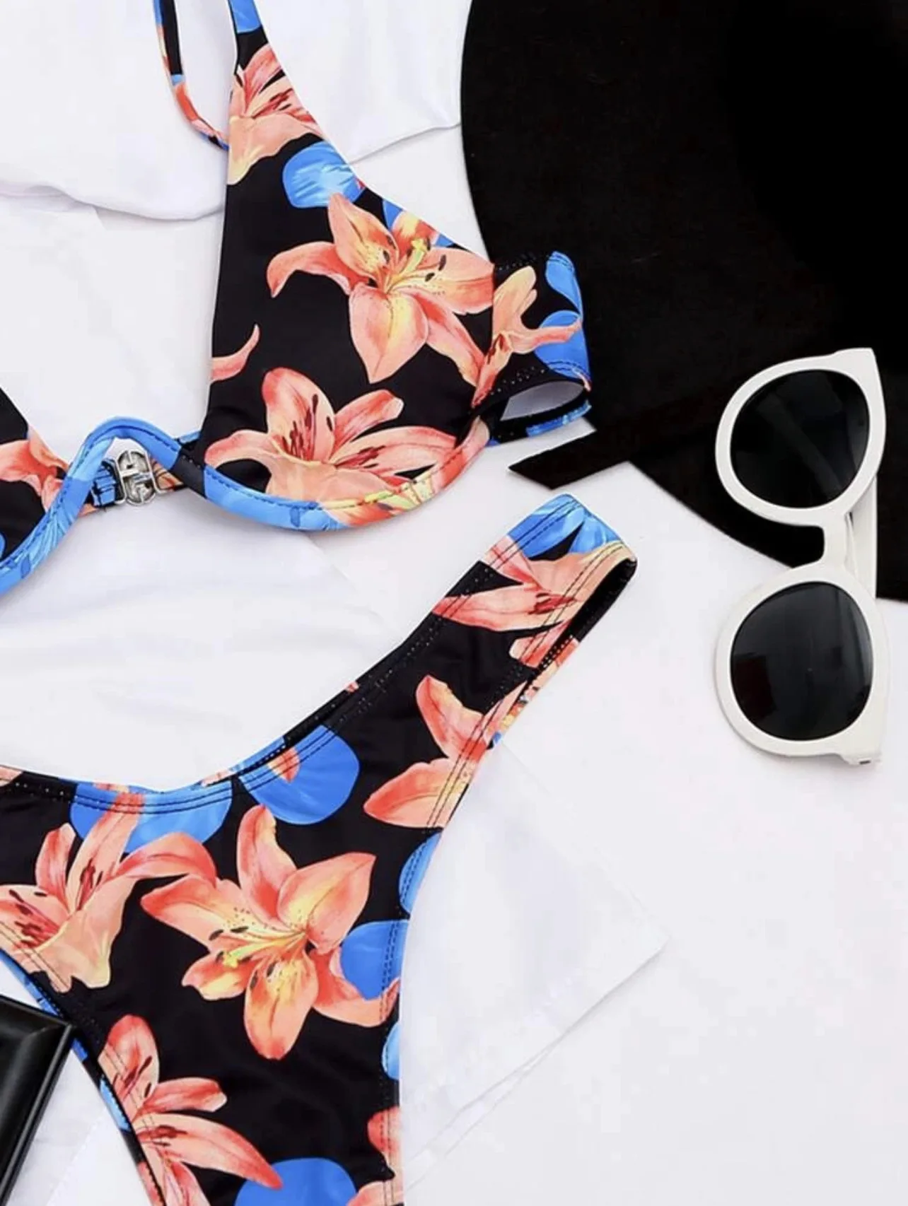 Женский купальник пуш-ап 2021, бикини с цветочным принтом, купальник, женский сексуальный купальный костюм с высоким вырезом, Бразильское бикини, летняя пляжная одежда