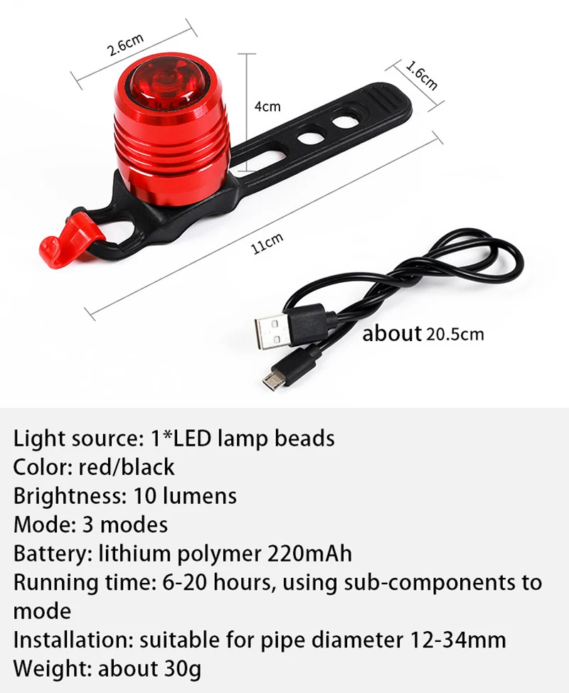 Задний фсветильник для велосипеда, с USB-зарядкой, водонепроницаемый