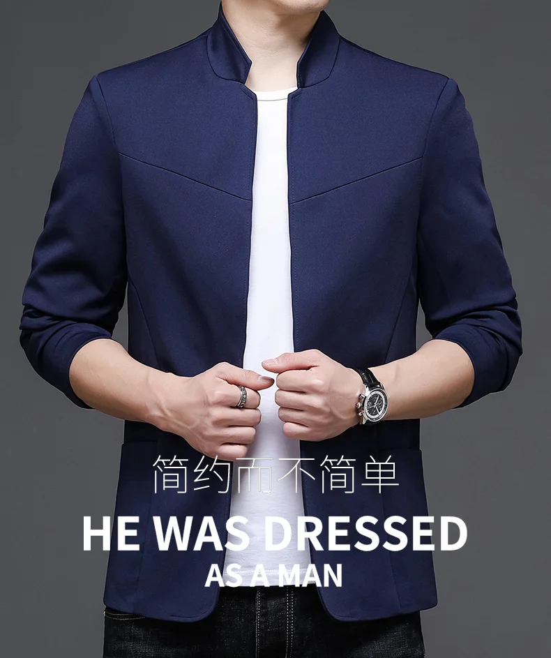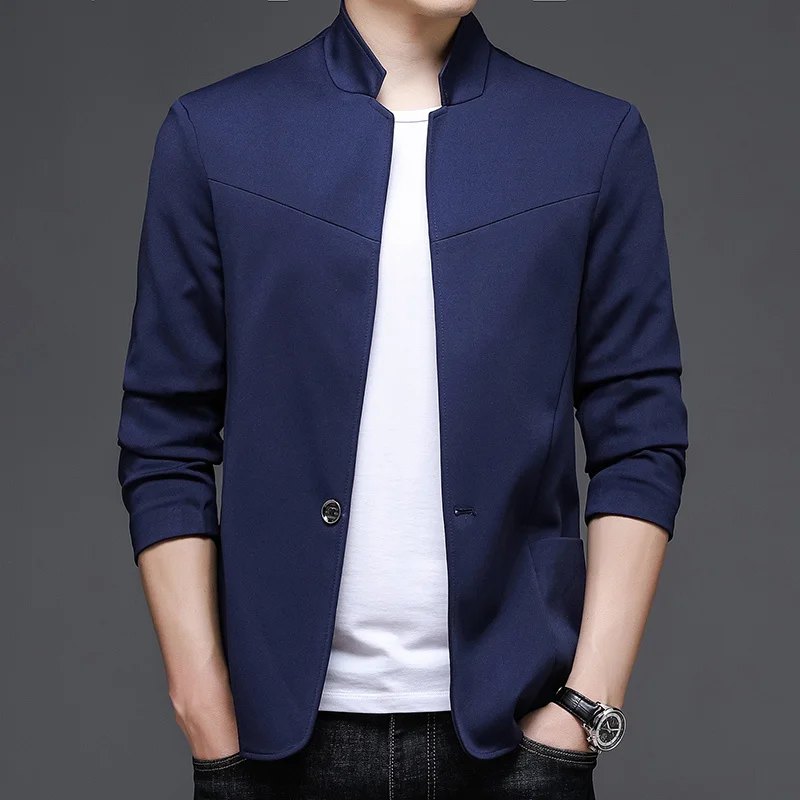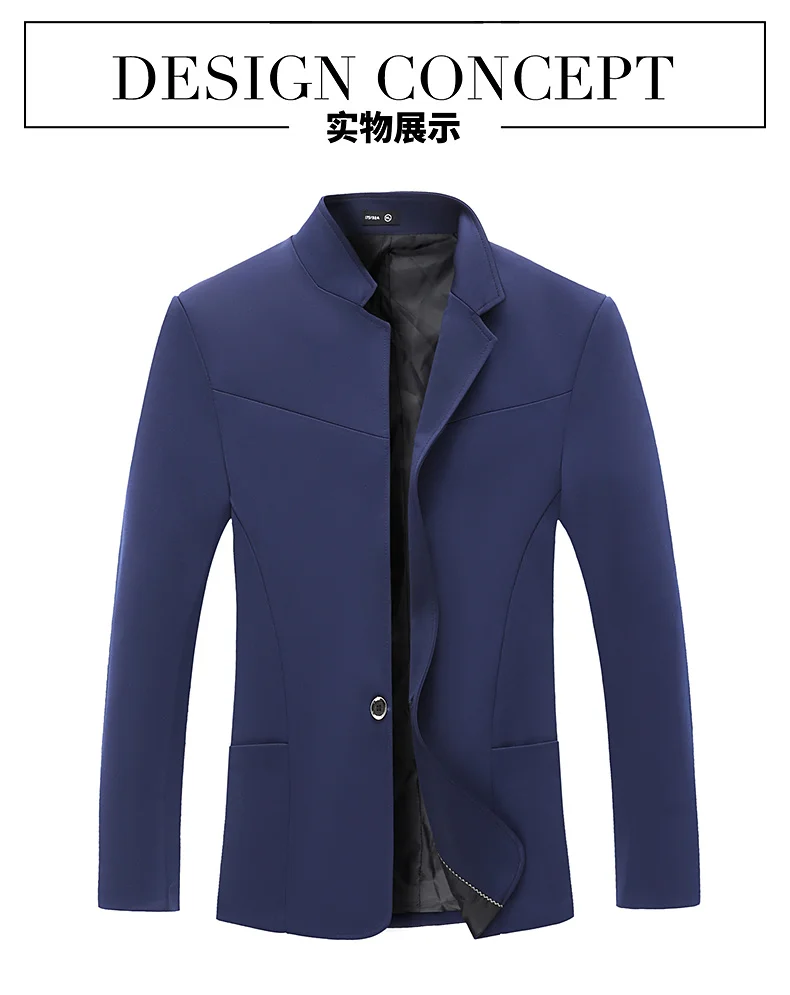 Мужской классический деловой пиджак, темно-синий пиджак, приталенный синего цвета