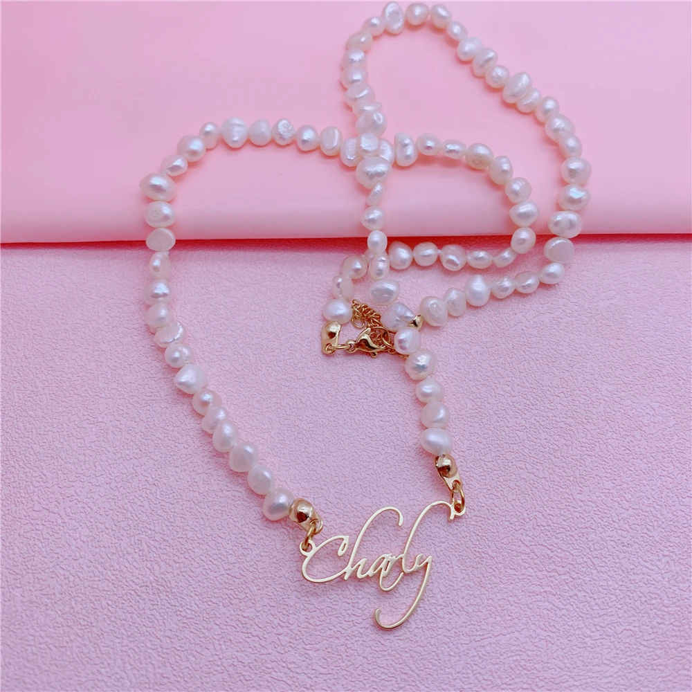 Ожерелье с жемчугом и именем на заказ, колье из нержавеющей стали с...