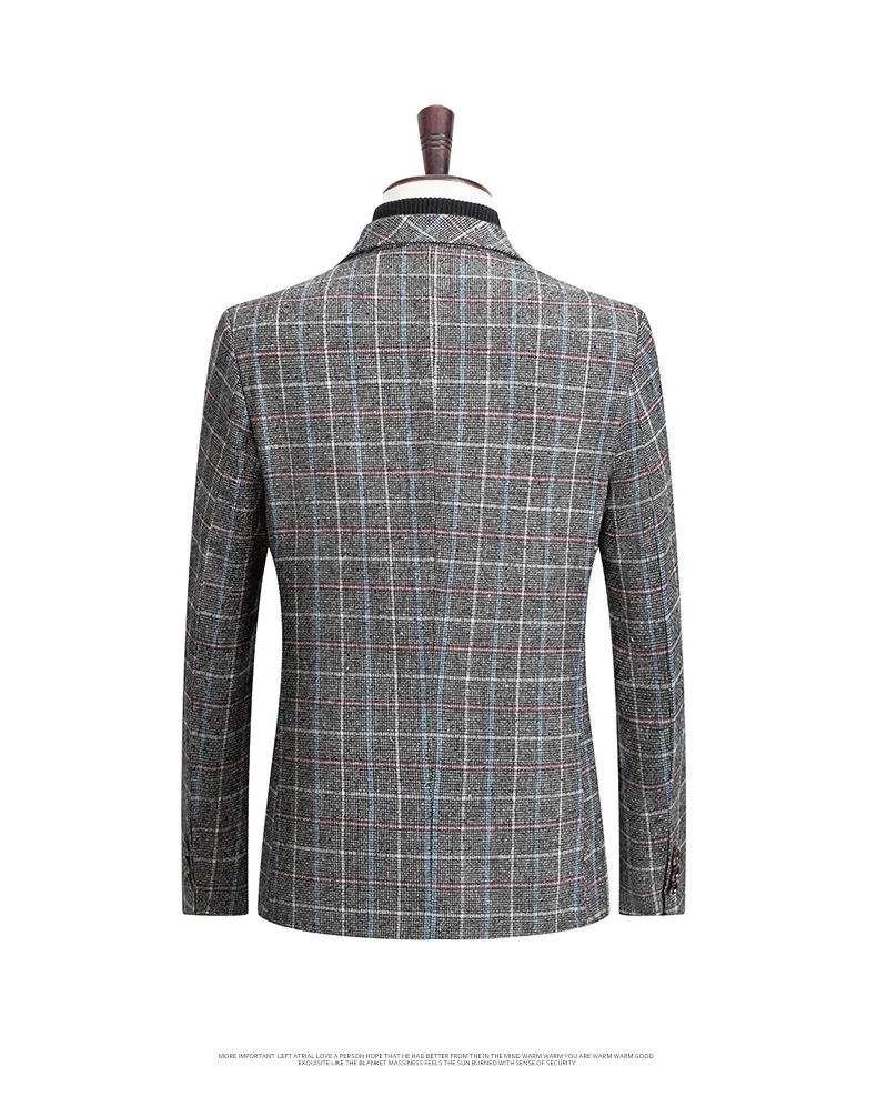 Мужской брендовый Блейзер, оригинальный пиджак в клетку, облегающий теплый пиджак, пальто для мужчин
