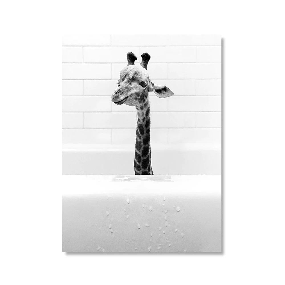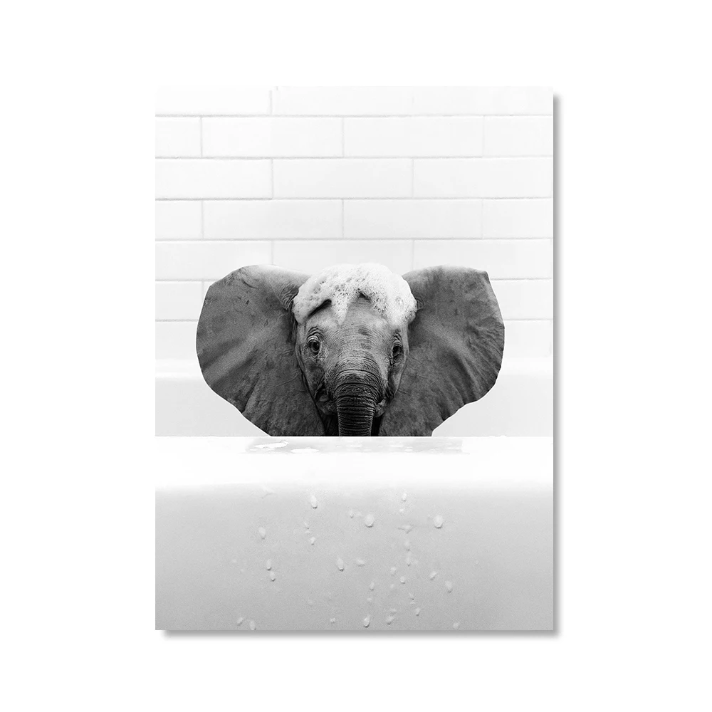Картина на холсте, постер с животными и принт, собака, слон, жираф, орангутан, Настенная картина для детей, ванная комната, туалет, домашний декор