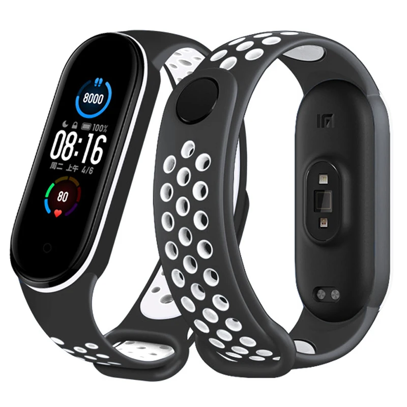 Силиконовый ремешок для Xiaomi Mi Band 5 4 3 6 пористый двухцветный...