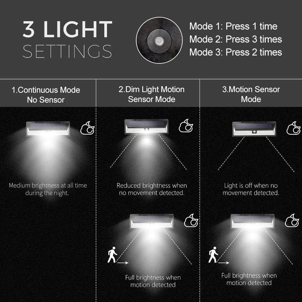 Вход Напряжение: 5,5 V общая Мощность: 20 Вт Тип лампы: светодиодный светильник источник: солнечный светильник светодиодный Кол-во: 100 шт. Светодиодный Светильник Цвет: белый Мощность Источник света: 1*3,7 V 2200mAH литиевая батарея для зарядки часов: 8hrs Время работы: более 8 часов Управление режимы: светильник/Пир высокое светильник задержки: 20-25s Сенсор угол: 120 ° Сенсор расстояние: 3-5 м Класс защиты: IP65 Материал: АБС-пластик • цвет изделия: черный размер лампы: 125*88*47 мм/4,9*3,5 * 1.9in (Длина * Ширина * высота) Вес товара: 154g/ 5.4ounces посылка Размер: 130*100*55 мм/5,1*3,9 * 2.2in (Длина * Ширина * высота) посылка Вес: 179g/6,3 унций, пожалуйста, убедитесь, что вы используете солнечный светильник был установлен в пределах 3 метров в высоту и убедитесь, что солнечная панель может поглощать солнечный светильник. Перед использованием Включите переключатель. Включает 1/2/4 * Светодиодный светильник на солнечной батарее