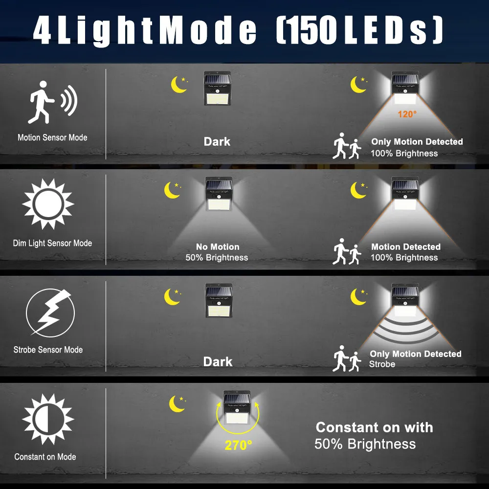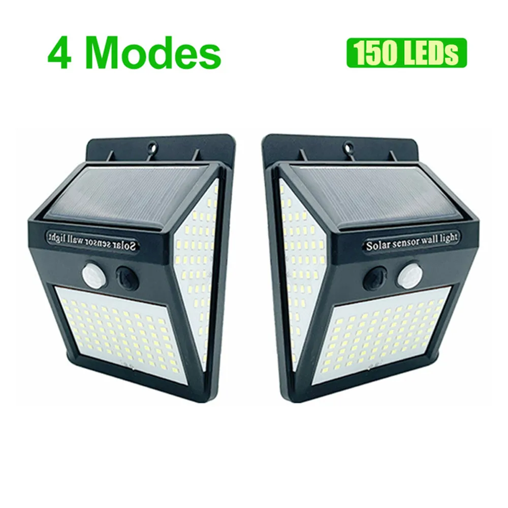 Уличная лампа на солнечной батарее с датчиком движения, 4 режима, 150 светодиодов, 2 шт.лот