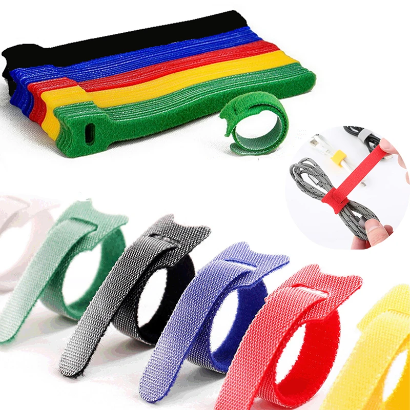 20 шт. многоразовый черный кабель нейлоновый ремешок петля для крючков аккуратный Органайзер инструмент крюк и петля кабельные стяжки несколько цветов