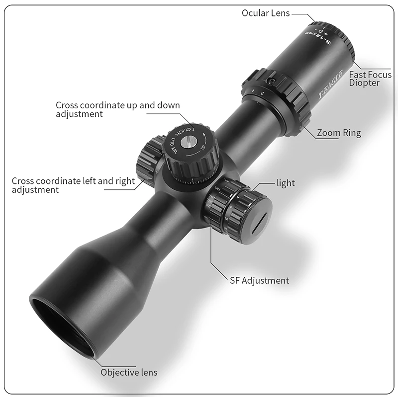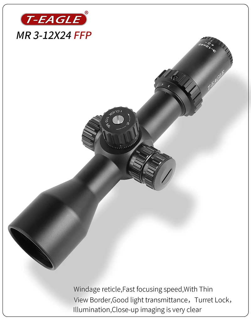 Компактный оптический прицел T-EAGLE MR 3-12X42 FFP, тактический оптический прицел со стеклянной гравировкой, сетка с красной и зеленой подсветкой для охоты