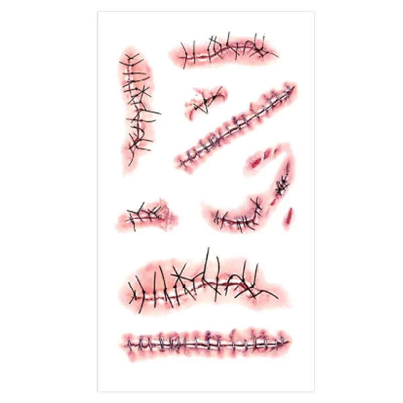 Тату-наклейки на Хэллоуин, водостойкие страшные наклейки со шрамами, индивидуальные тату-наклейки со шрамами, наклейки для лица