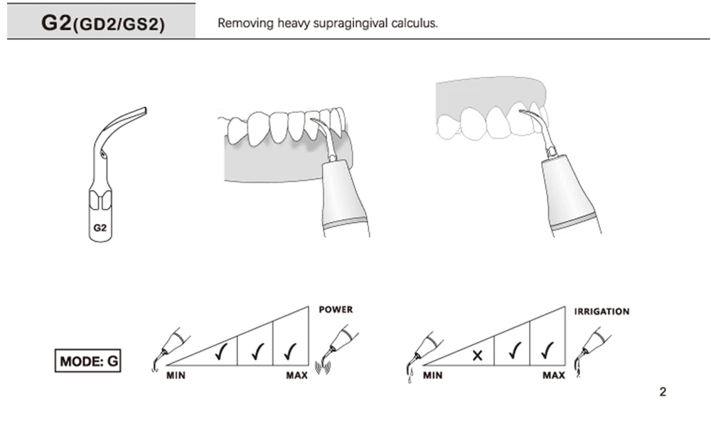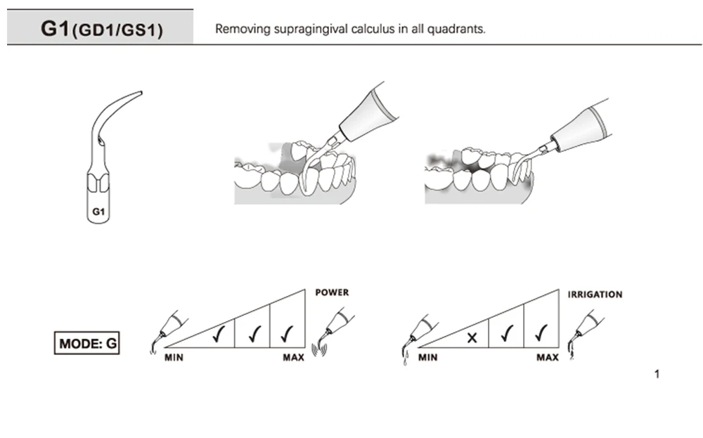G1: для удаления подсчета на передних зубах, шее моляров и гингивах.