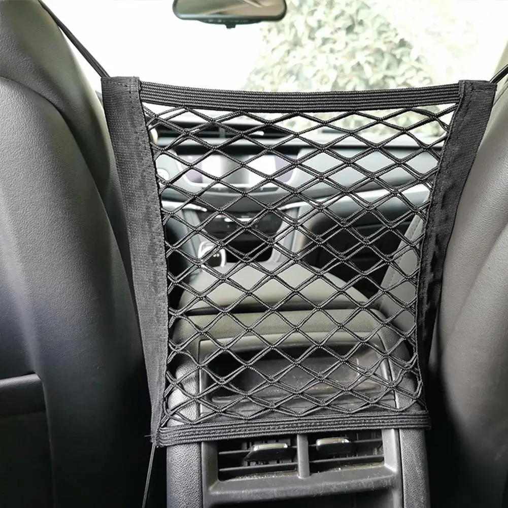 Эластичная Сетчатая Сумка для хранения в салоне автомобиля, на липучке
