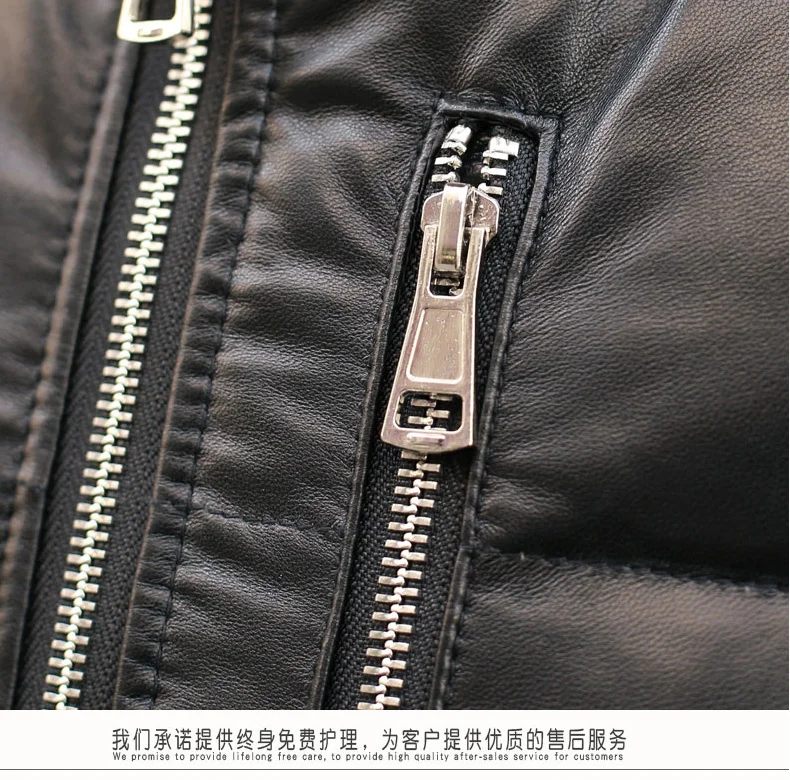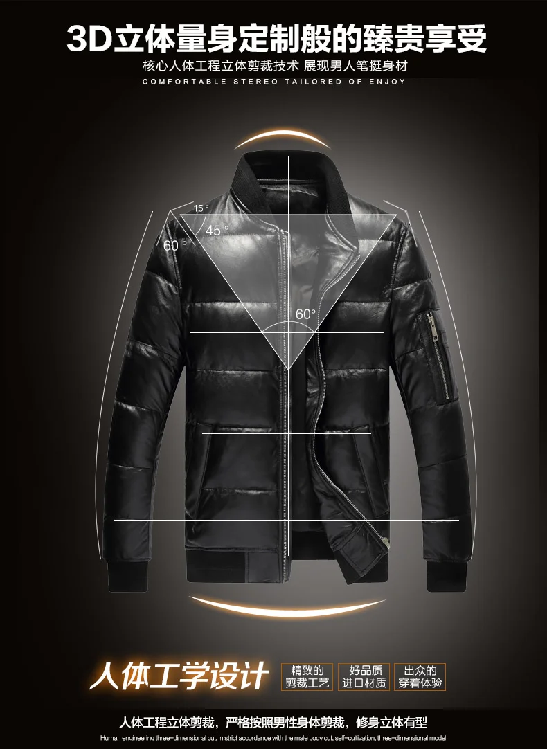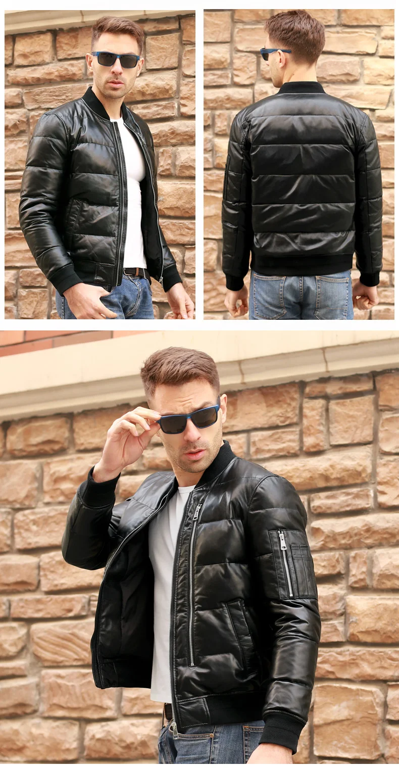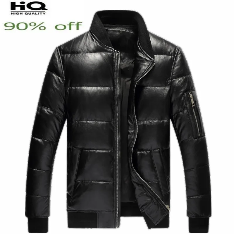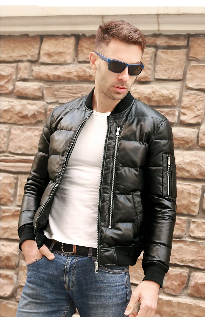 Мужские Зимние Теплые Куртки из натуральной кожи на белом утином пу...