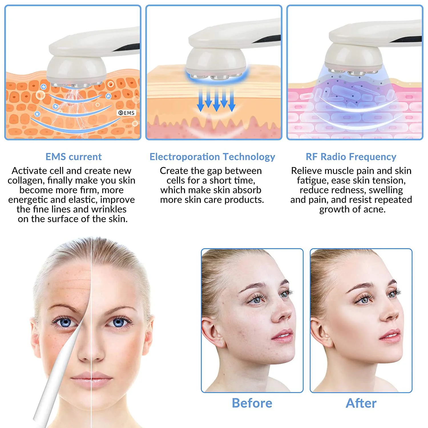 EMS для лица, мезотерапия, Электропорация, радиочастотный светодиодный фотонный лифтинг лица, подтяжка, удаление морщин, уход за кожей, массажер