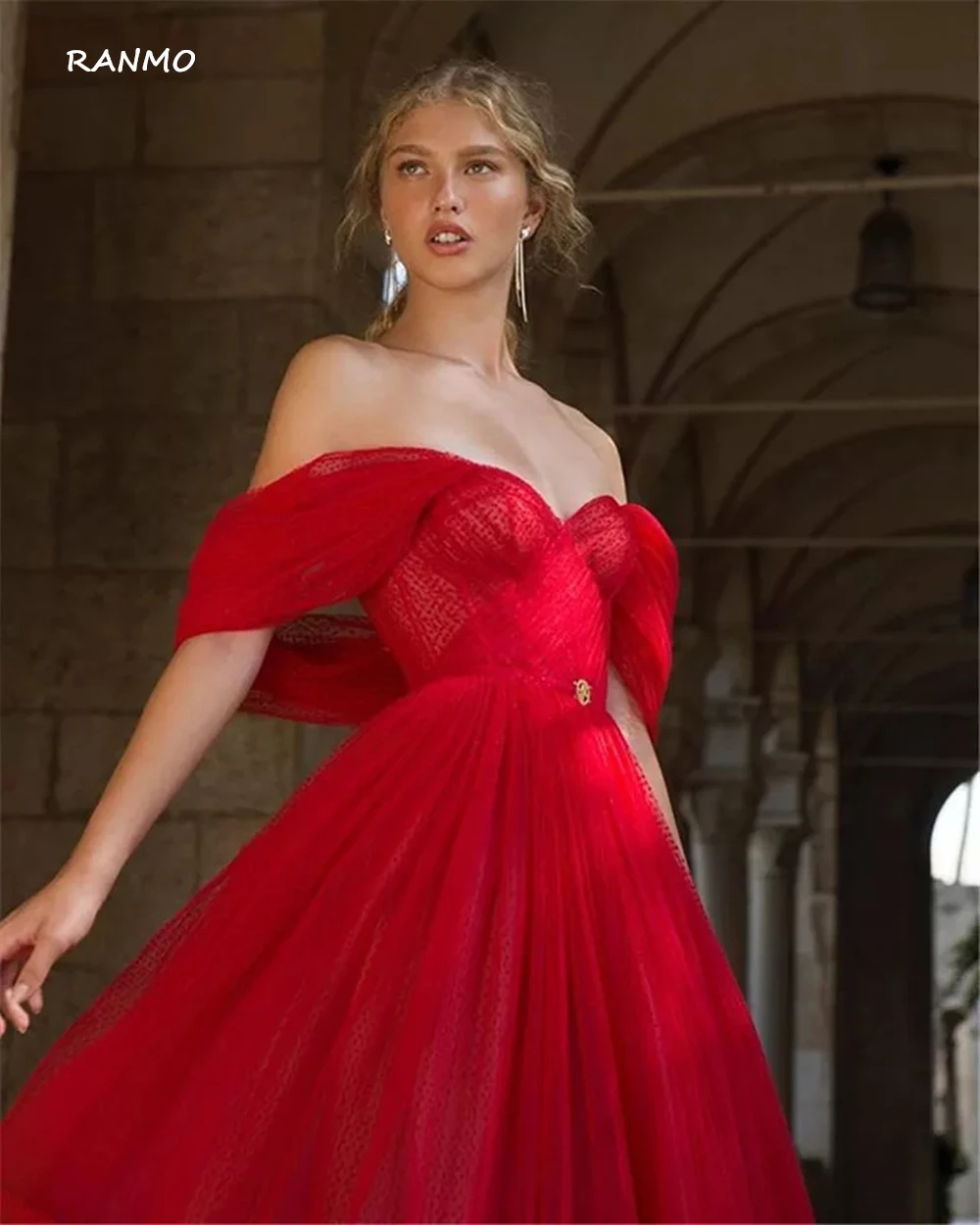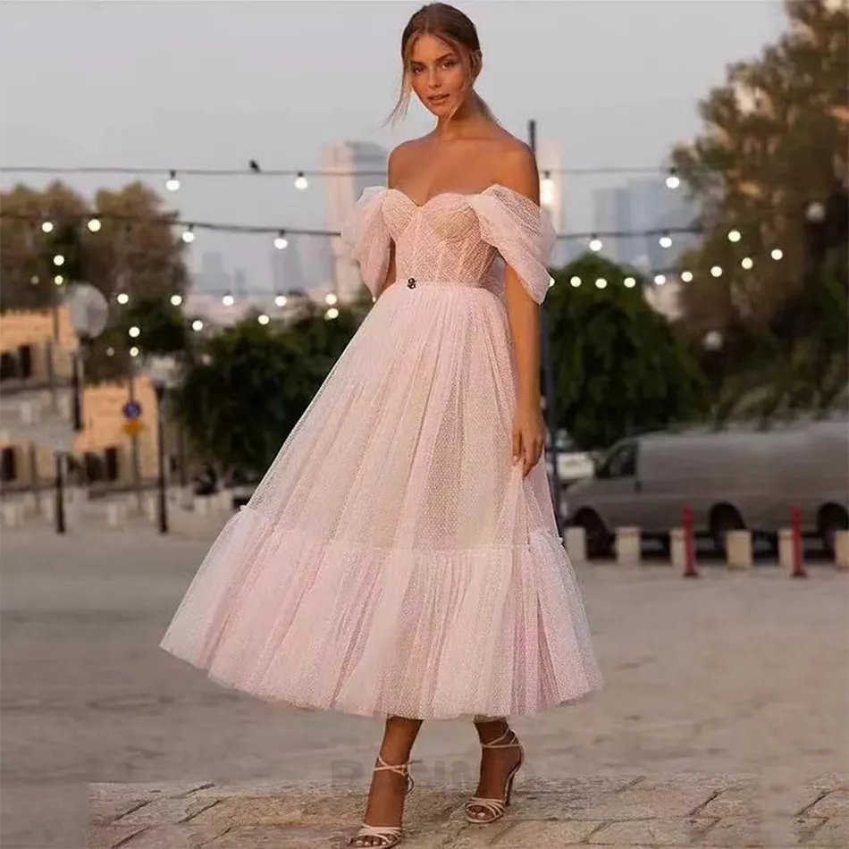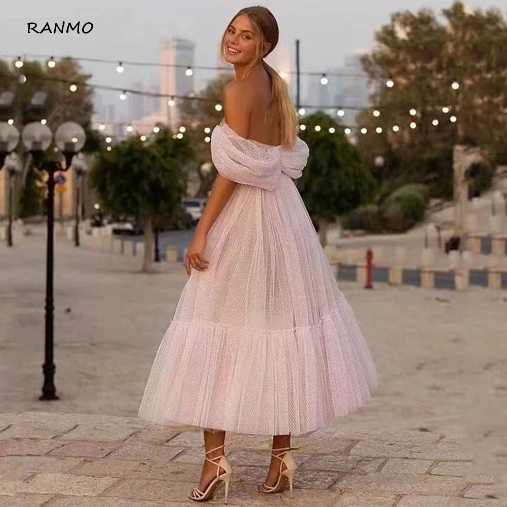 Короткое свадебное платье RANMO в горошек, с открытыми плечами и рукавами, из тюля, элегантное платье невесты длиной ниже колена для вечеринки, приема