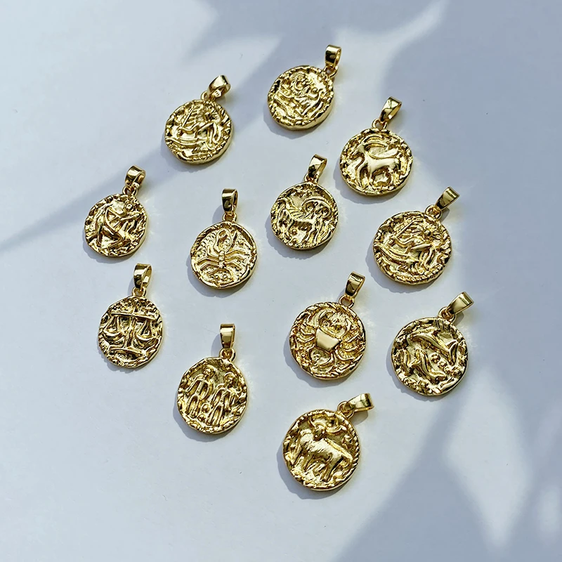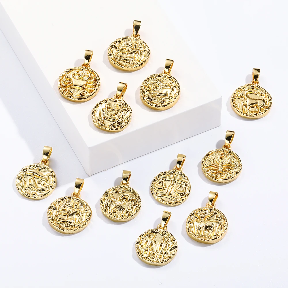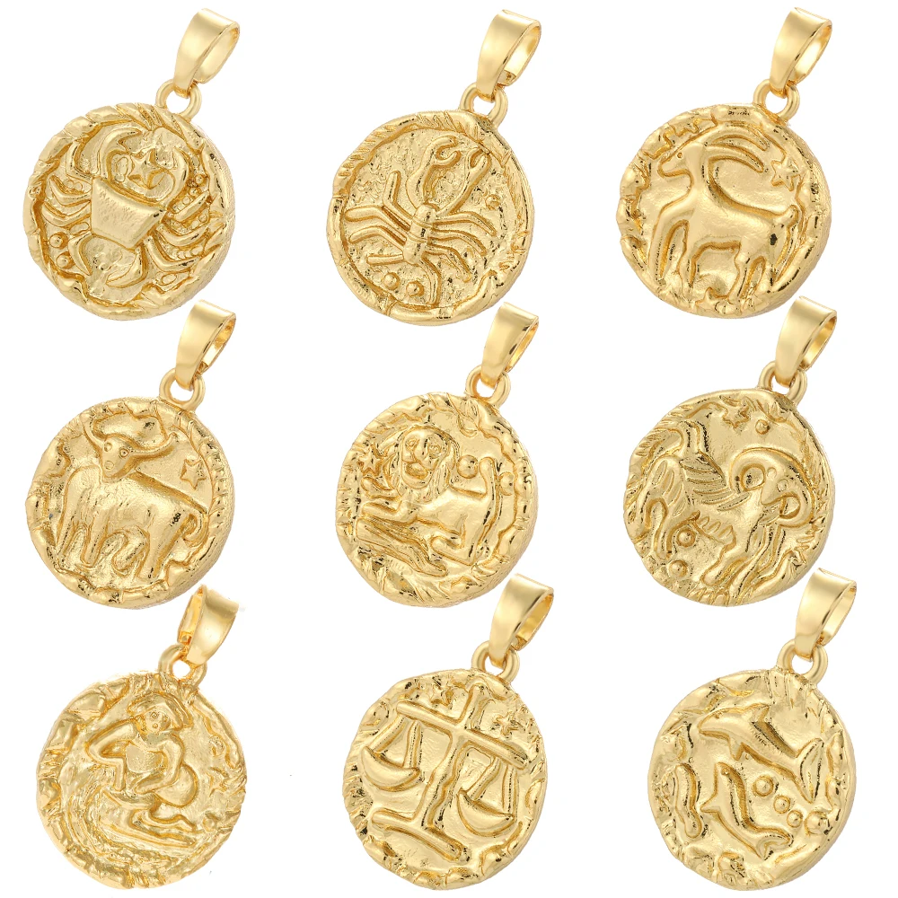 12 созвездий зодиака для ожерелья ювелирные изделия Сделай Сам браслет брелок аксессуары Золотой винтажный амулет круглый кулон