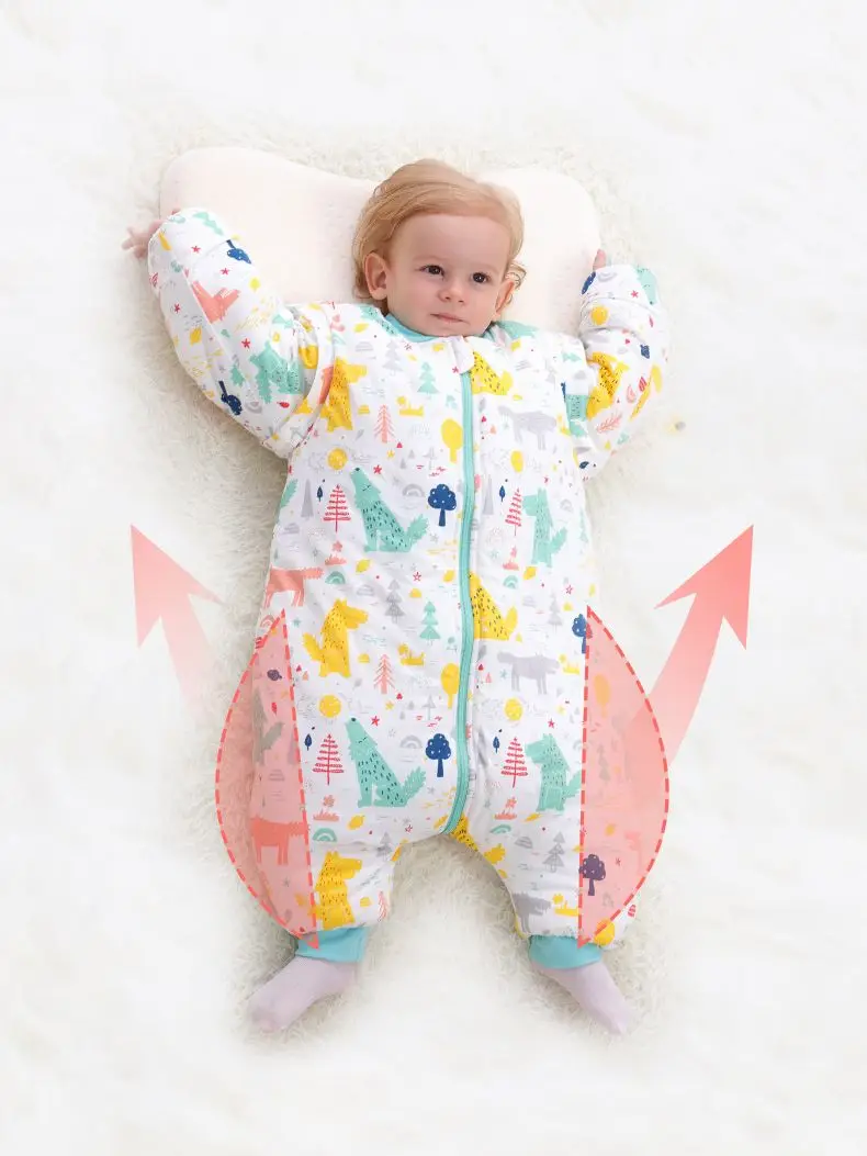Спальный мешок HappyFlute из хлопка с длинным рукавом, зимний мультяшный разрез на ногах, Детская толстая ткань, подходит для детей